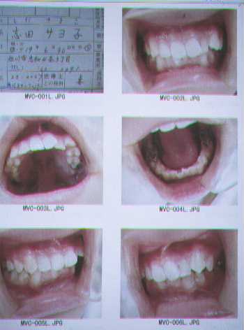 *注:現在、当医院では患者さんの口腔内状態のデジタル写真を4年前より必要に応じデーターベースとして蓄積してあります。そして、平成12年4月からはほぼ全員の患者のデジタル写真を保存しています。それによって今後の診療に利用しています。また、技工指示の色・形態等の指示はデジカメ写真を利用して、インターネット・Eメール(画像添付)を経由して当医院の専属・指定技工所で綿密に打ち合わせて技工物を製作しています。