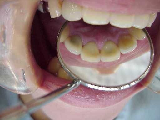 術後の上顎4前歯(ミラーにて)