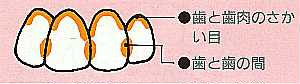 | 歯プラシのとどがない歯と歯の間に入れ、歯の側面を2〜3回こすってプラークを除きます。 最近は泡立ちが少なくて、歯がすり減らない歯磨剤が売られ、かっての問題点が改善されています。また、フッ素は、歯を強くし、細菌の働きを抑え、プラークをできにくくする効果がありますが、特に食事やおやつのたぴに溶ける歯の表面を修復する作用があります。 この効果を持続するために、最後にもう一度歯磨剤を使い、うがいを軽く1回して下さい。 欧米では歯磨剤の90%以上がフッ素入りです。 |